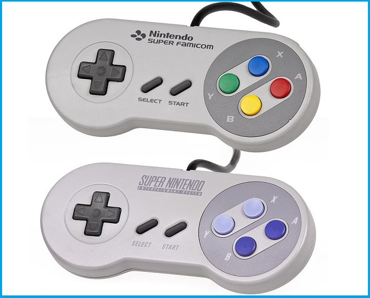 Seu formato básico incluía um direcional digital, 4 botões em cruz (A, B, X e Y),