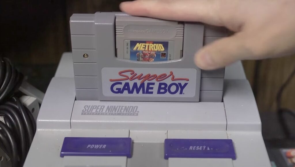 Adaptador que permite jogar cartuchos de Game Boy no SNES.