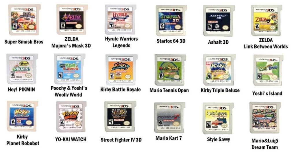 com títulos dos portáteis antecessores, o Nintendo DS e o DSi.