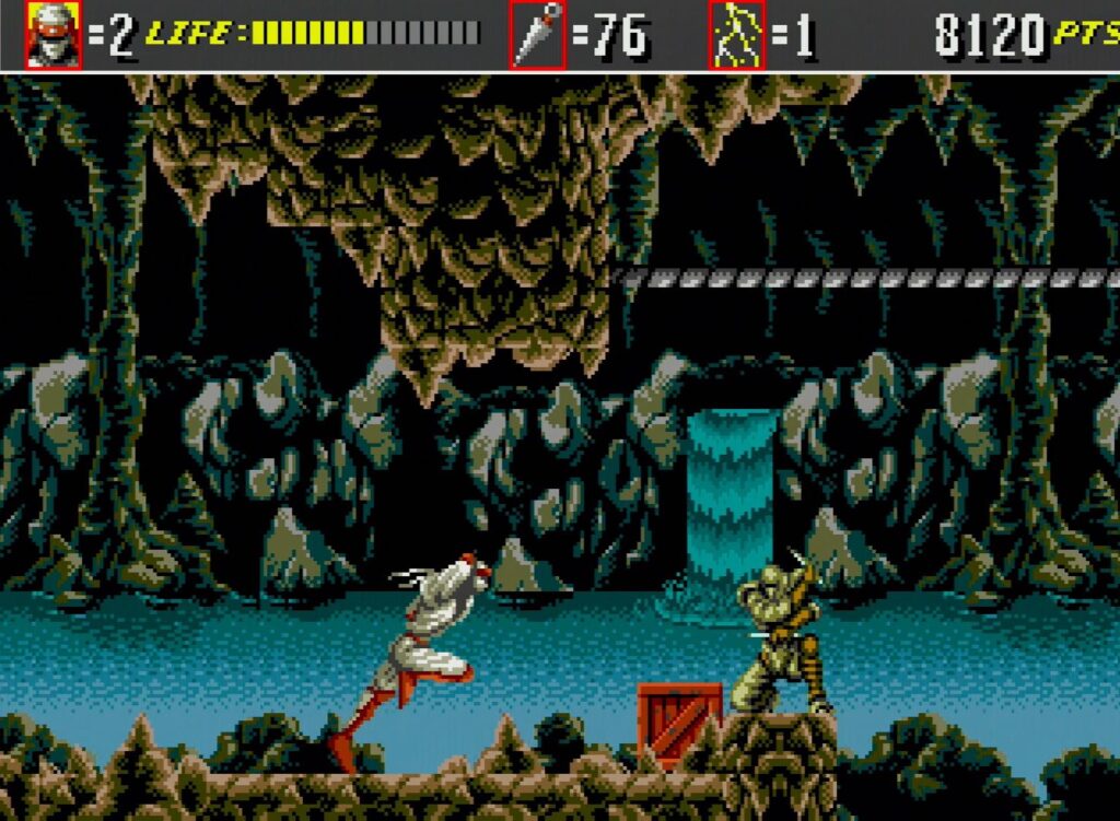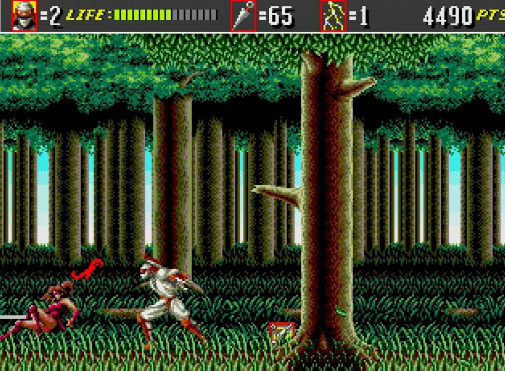 No game o jogador controla o ninja Joe Musashi.